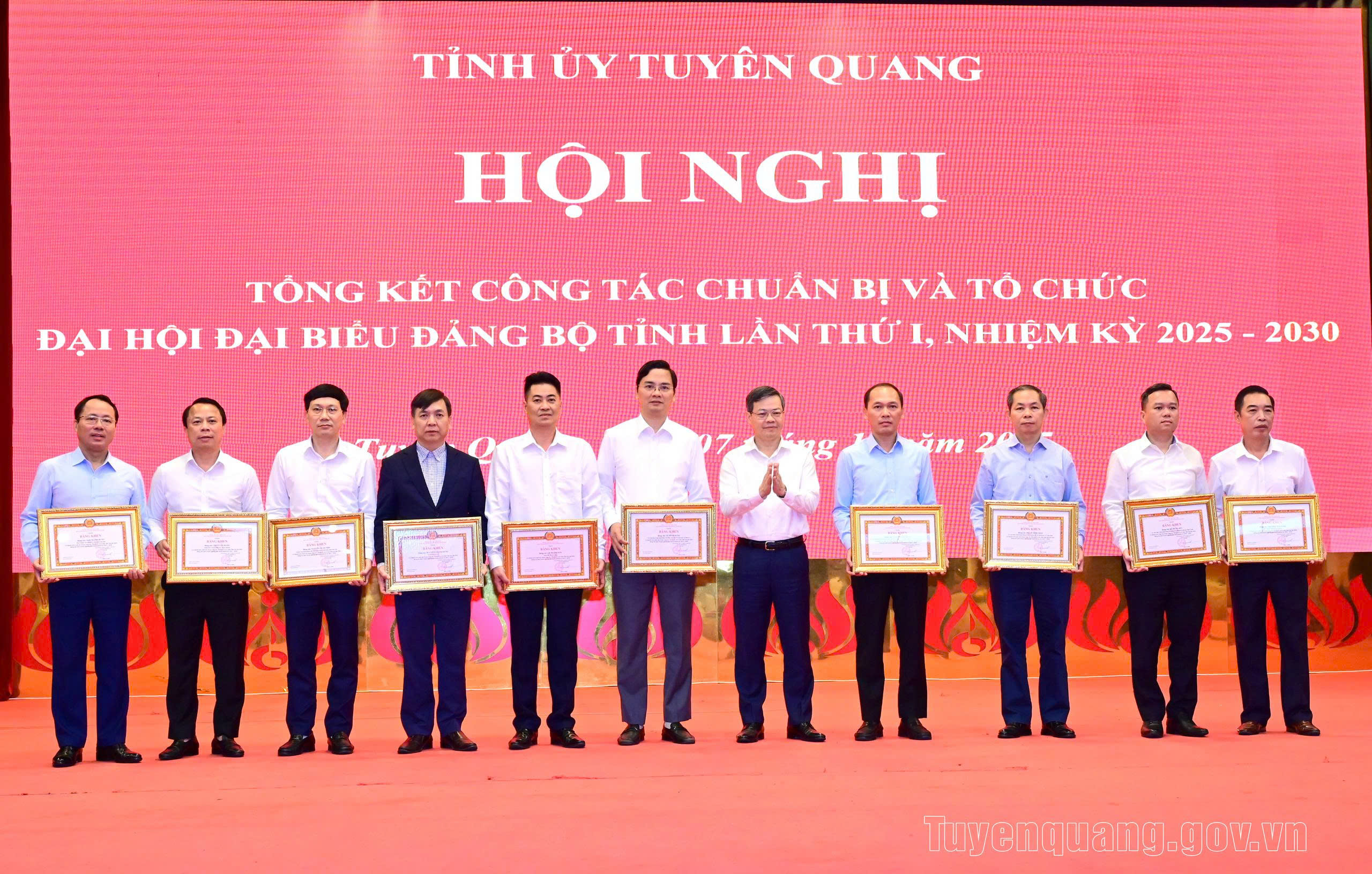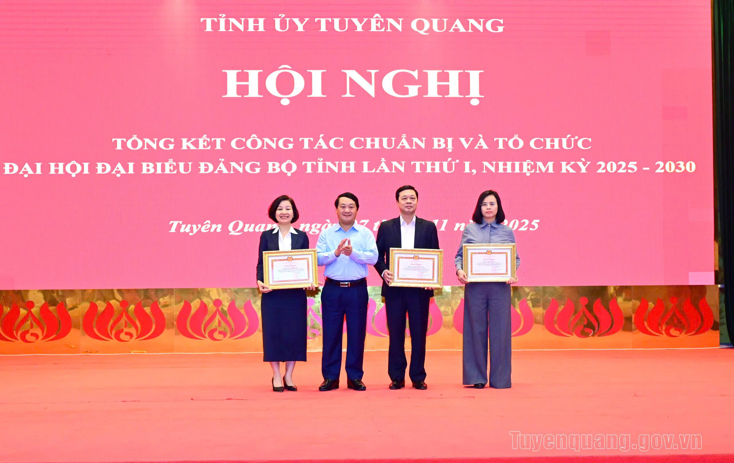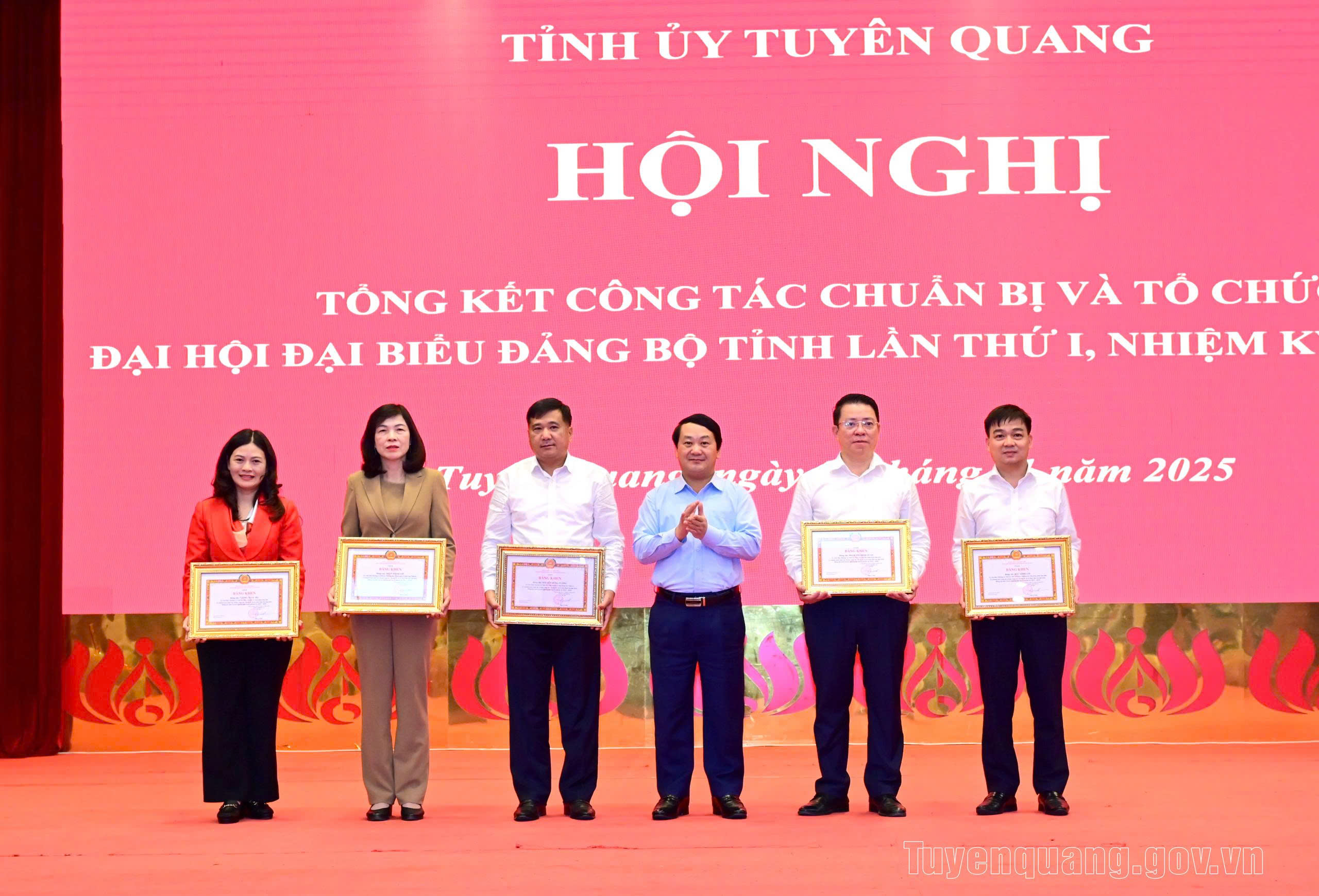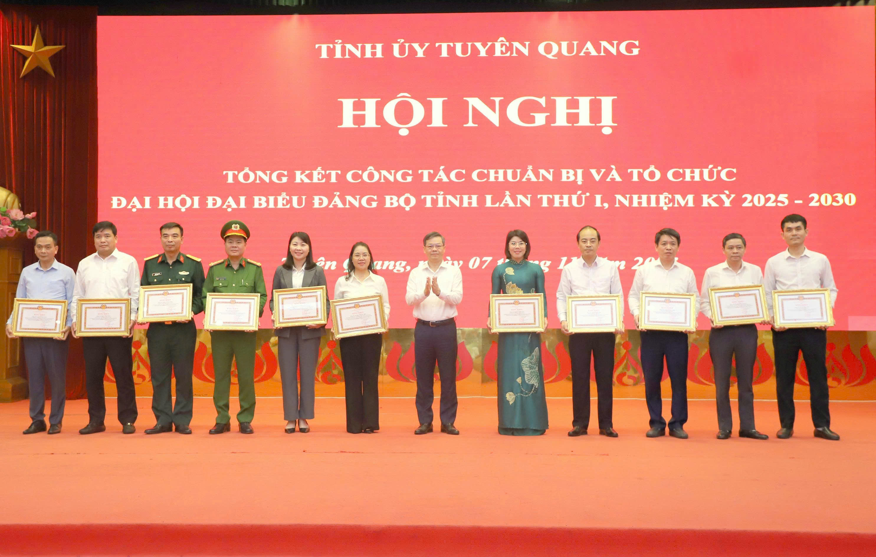 Tại hội nghị đã trao Bằng khen của Chủ tịch UBND tỉnh cho 21 tập thể, 67 cá nhân có thành tích xuất sắc trong công tác chuẩn bị và tổ chức Đại hội đại biểu Đảng bộ tỉnh lần thứ I, nhiệm kỳ 2025-2030.