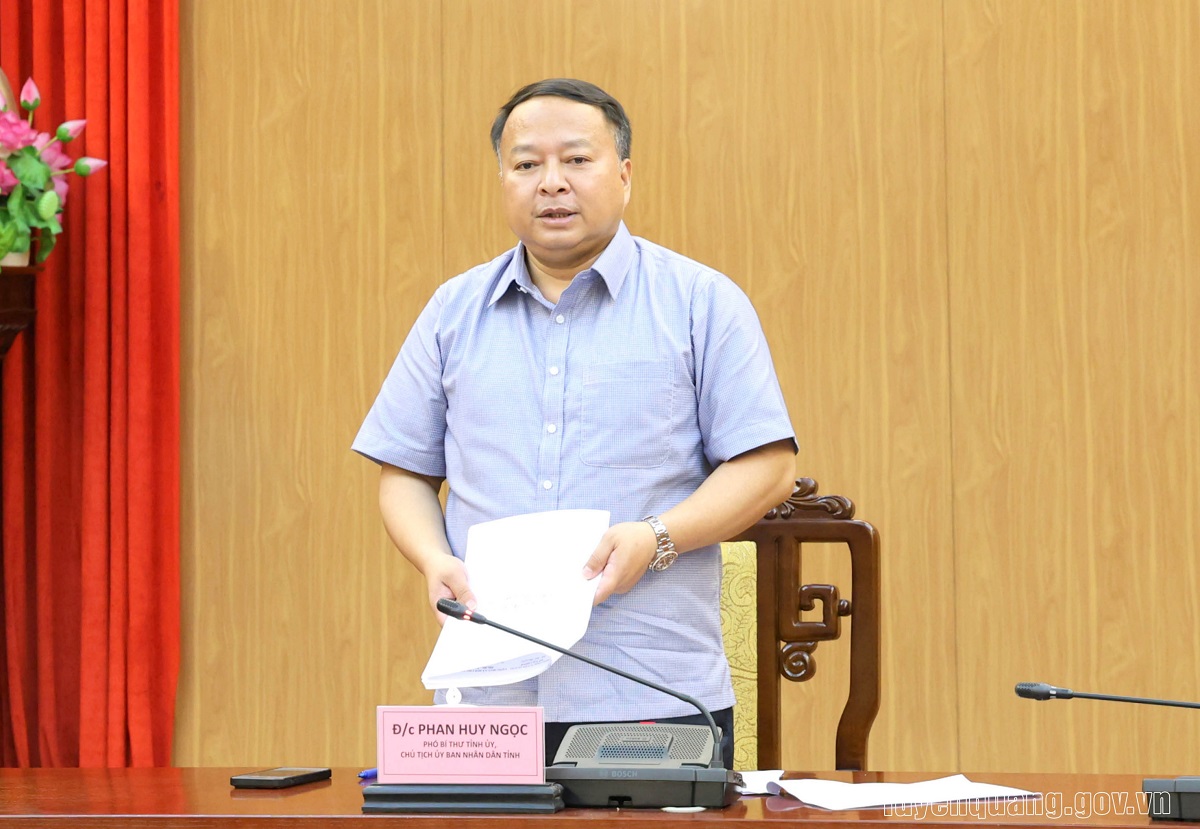 Đồng chí Chủ tịch UBND tỉnh Phan Huy Ngọc chủ trì cuộc họp.