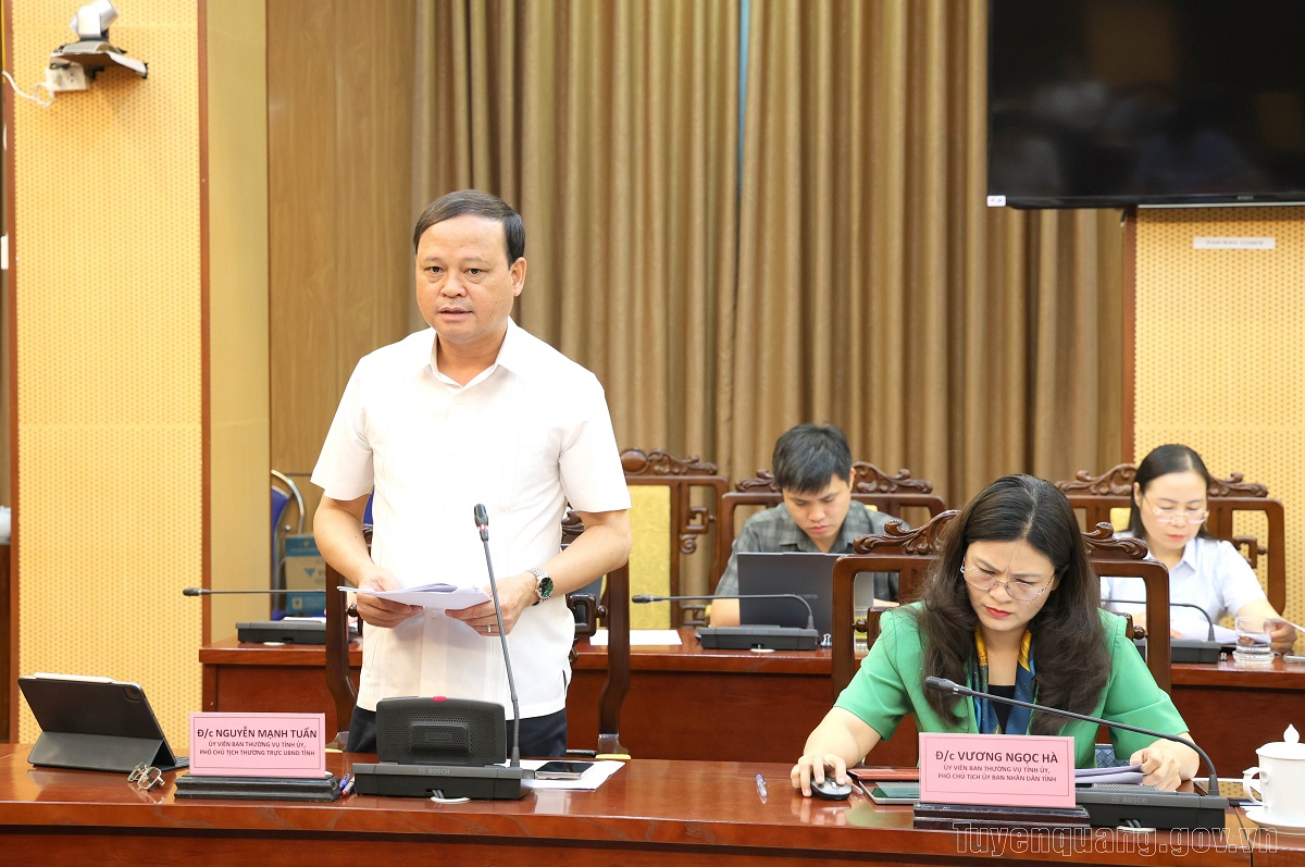 Đồng chí Phó Chỉ tịch Thường trực UBND tỉnh Nguyễn Mạnh Tuấn phát biểu tại cuộc họp.