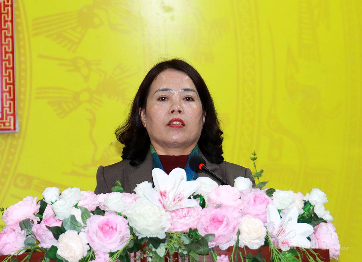 Đồng chí Lý Thị Lan, Trưởng đoàn đại biểu Quốc hội khóa XV tỉnh phát biểu tại buổi tiếp xúc.