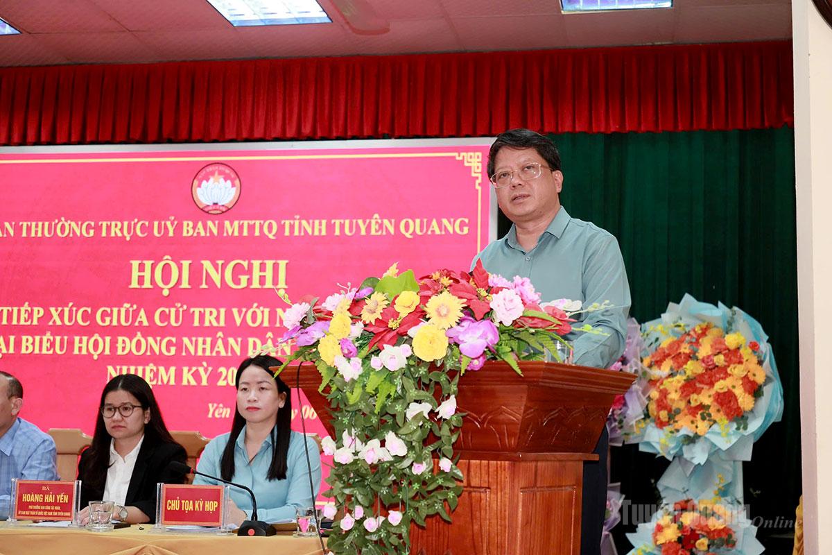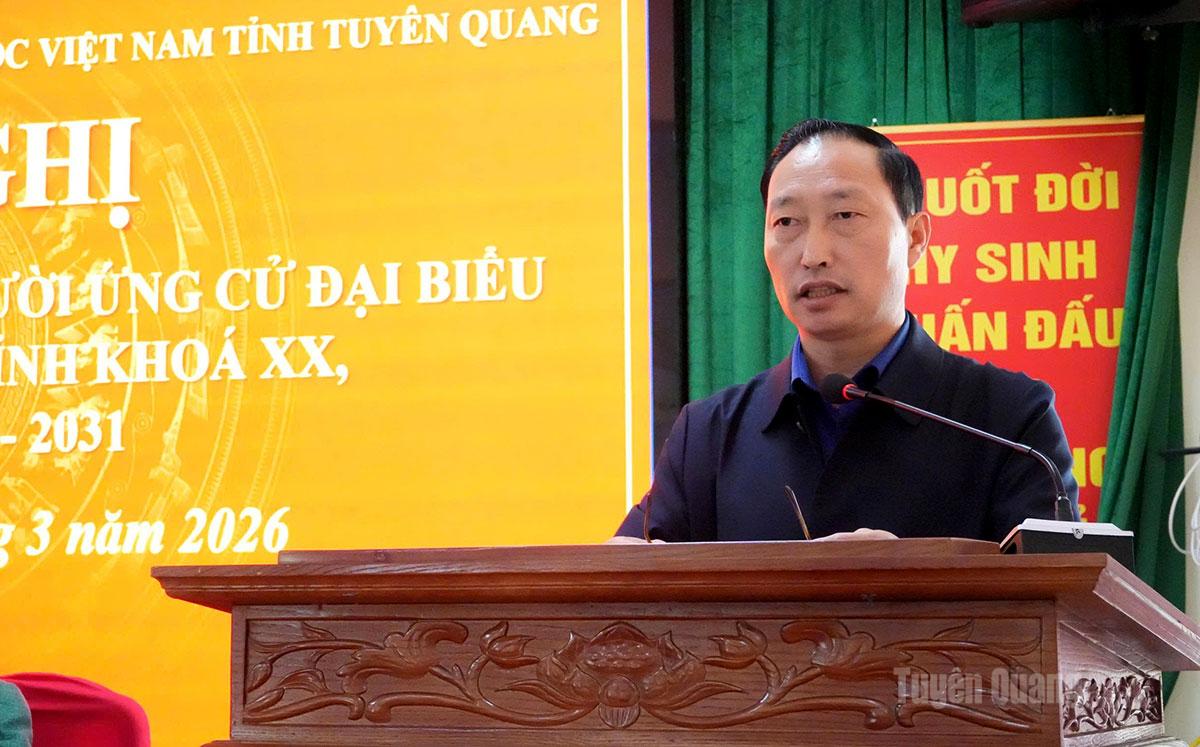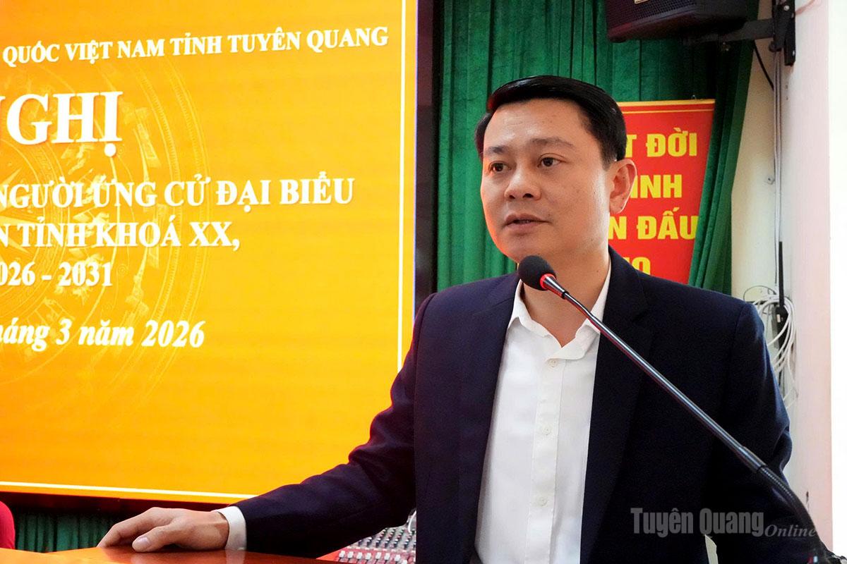 Đại diện Ủy ban MTTQ Việt Nam tỉnh đã lần lượt giới thiệu tóm tắt tiểu sử, quá trình công tác của 8 ƯCV đại biểu HĐND tỉnh khóa XX, nhiệm kỳ 2026 – 2031 gồm các ông, bà: Hà Trung Kiên, Ủy viên BTV Tỉnh ủy, Phó Chủ tịch Thường trực Ủy ban MTTQ Việt Nam tỉnh; Nguyễn Ngọc Loan, Công chức phòng Nội chính, Văn phòng UBND tỉnh; Nguyễn Văn Lợi, Trưởng Ban Pháp chế, HĐND tỉnh; Lâm Thị Hồng Ngân, Bí thư Đảng ủy, Chủ tịch HĐND xã Kiên Đài; Nguyễn Văn Việt, Tỉnh ủy viên, Trưởng ban Dân tộc, HĐND tỉnh; Lê Văn Vượng, Chánh văn phòng, Báo và phát thanh, truyền hình Tuyên Quang; Hoàng Thị Hải Yến, Phó Trưởng ban Công tác công đoàn, Ủy ban MTTQ Việt Nam tỉnh; Hoàng Thị Yến, Giáo viên trường Mầm non Hùng Mỹ, xã Tân Mỹ.