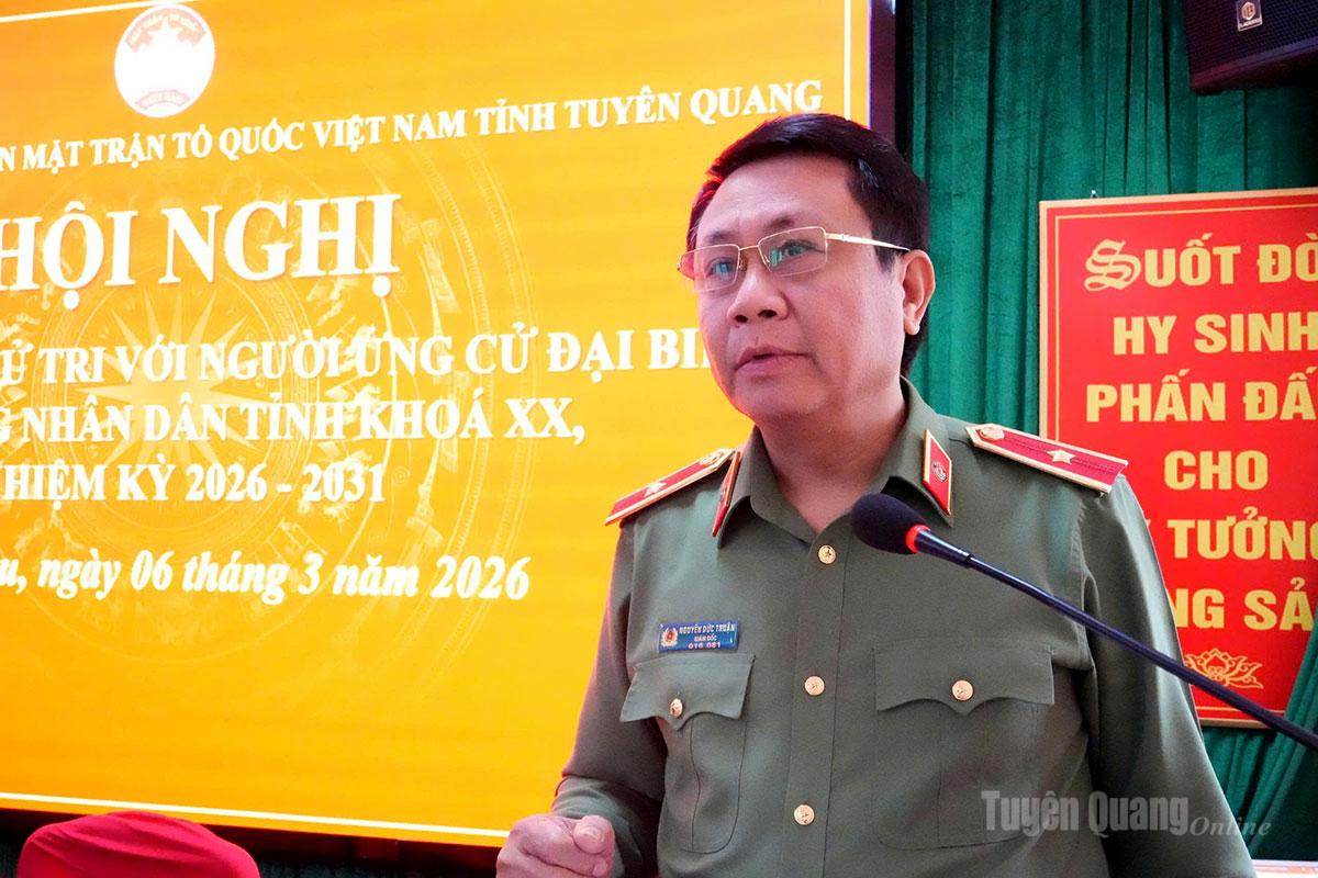 Thay mặt các ứng cử viên, Thiếu tướng Nguyễn Đức Thuận, Giám đốc Công an tỉnh đại diện các ứng cử viên khẳng định sẽ tiếp thu, tổng hợp ý kiến cử tri để hoàn thiện chương trình hành động, góp phần nâng cao chất lượng hoạt động của cơ quan dân cử, bảo đảm tiếng nói và nguyện vọng chính đáng của Nhân dân được phản ánh đầy đủ, kịp thời.