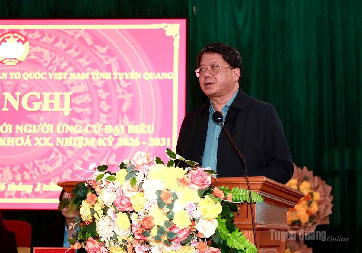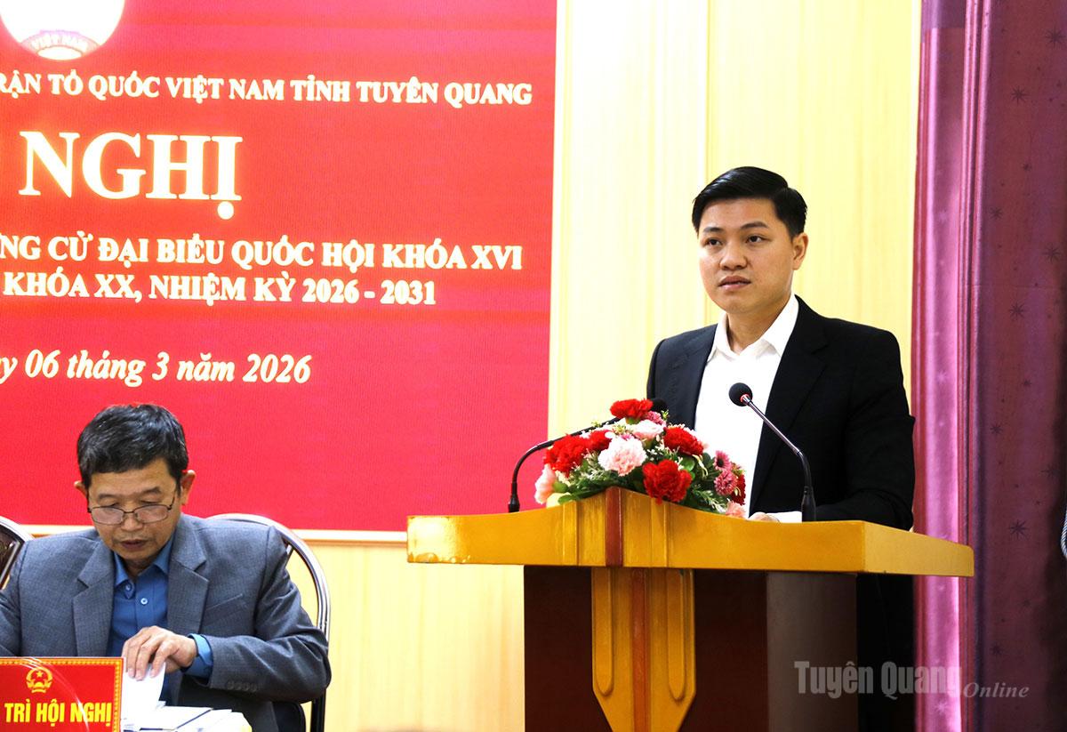 Tại hội nghị, đại diện Ban Thường trực Ủy ban MTTQ Việt Nam tỉnh thông qua tiểu sử tóm tắt của các ứng cử viên đại biểu HĐND tỉnh khóa XX, đơn vị bầu cử số 2 gồm 7 đồng chí: Âu Thị Mai, Ủy viên BCH Đảng bộ tỉnh, Phó Chủ tịch Ủy ban MTTQ Việt Nam tỉnh, Chủ tịch Hội LHPN tỉnh; Trần Thị Hà, Phó Trưởng ban Pháp chế, HĐND tỉnh; Hoàng Lê Huy, Phó Trưởng phòng Quy hoạch Đầu tư xây dựng, Văn phòng UBND tỉnh; Nguyễn Thị Hồng Xiêm, Phó Trưởng phòng Đô thị và Nhà ở, Sở Xây dựng tỉnh; Nguyễn Minh Anh Tuấn, Hiệu trưởng Trường Đại học Tân Trào; Nguyễn Thị Hải Yến, Bí thư Đoàn xã Hồng Sơn; Trần Thị Hải Yến, giáo viên Trường Mầm non Văn Phú, xã Hồng Sơn.