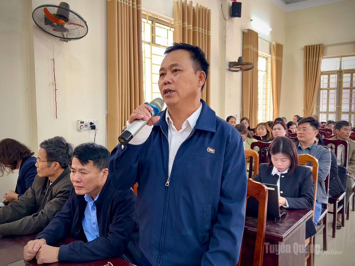 Cử tri xã Trung Sơn phát biểu ý kiến tại hội nghị tiếp xúc cử tri.