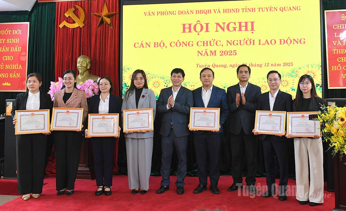 Tại hội nghị đã khen thưởng các tập thể, cá nhân có thành tích trong công tác năm 2025; đồng thời phát động thi đua năm 2026 giữa các đơn vị thuộc Văn phòng Đoàn ĐBQH và HĐND tỉnh.