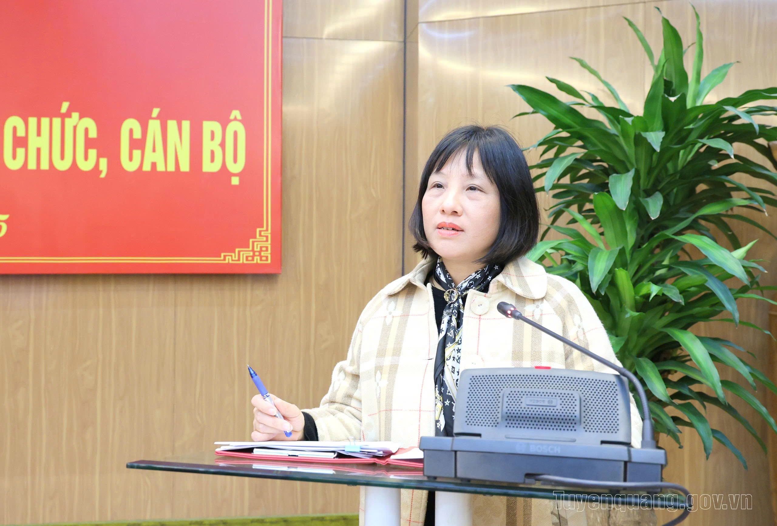 Chánh Văn phòng UBND tỉnh Lại Thị Hương phát biểu tại hội nghị.