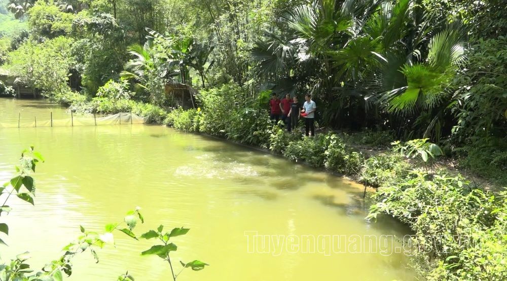 Ao nuôi cá Bỗng của gia đình chị Lý Thị Thẩy ở thôn Châng.