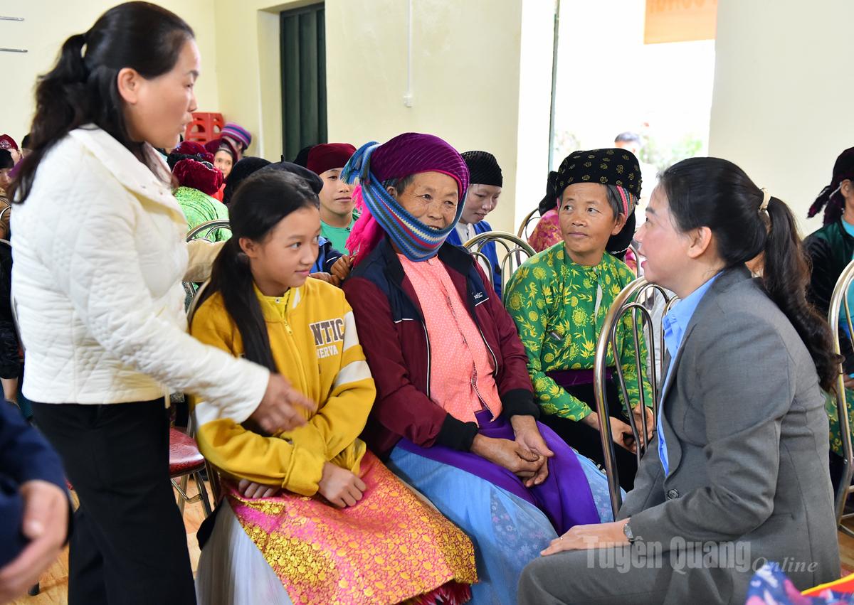 Đồng chí Lê Thị Kim Dung, Phó Bí thư Thường trực Tỉnh ủy nói chuyện với bà con nhân dân thôn Tả Lủng.