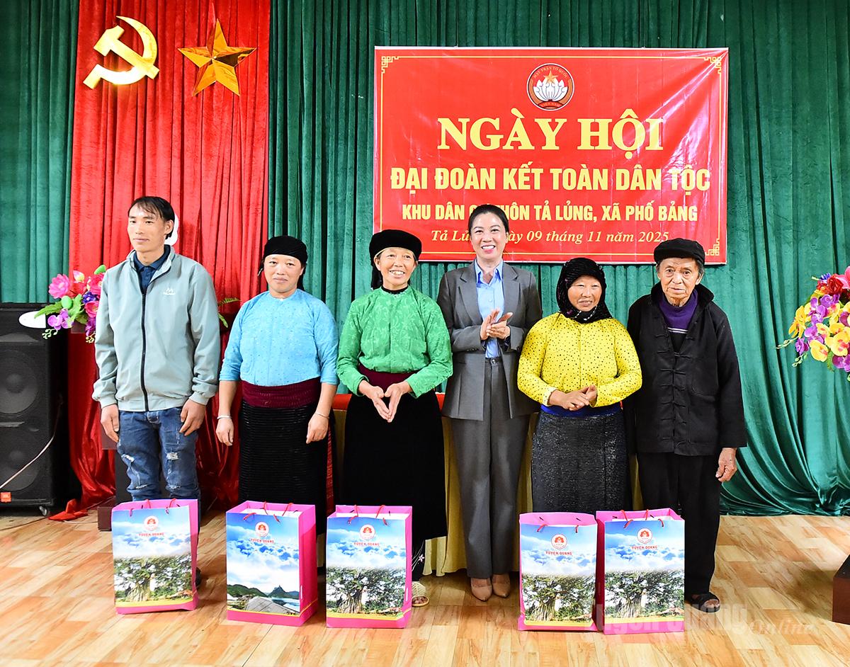 Đồng chí Lê Thị Kim Dung, Phó Bí thư Thường trực Tỉnh ủy dự Ngày hội đoàn kết các dân tộc khu dân cư thôn Tả Lủng xã Phố Bảng.