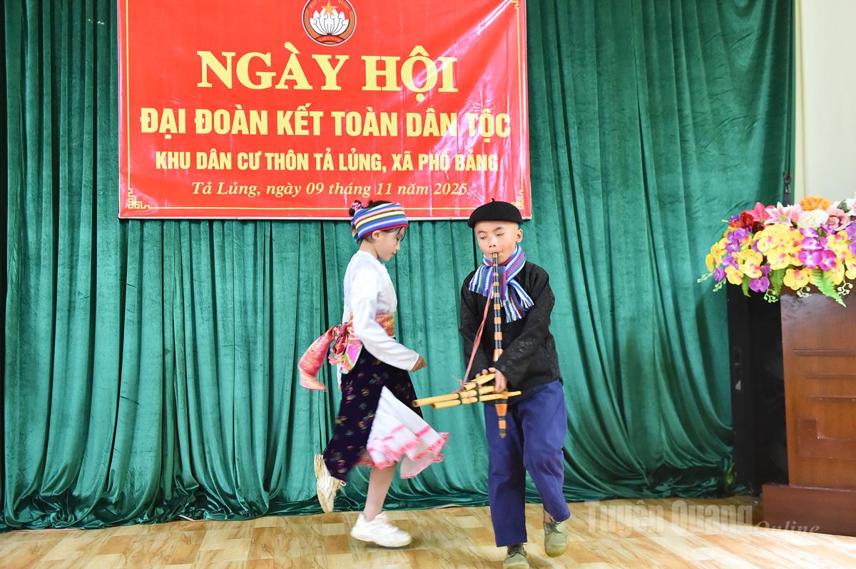 Thiếu nhi thôn Tả Lủng biểu diễn múa khèn.