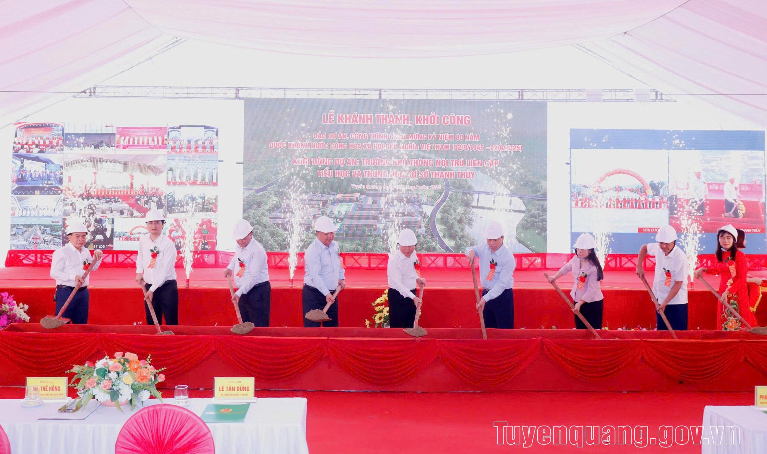 Lãnh đạo Bộ Giáo dục và Đào tạo cùng các đồng chí lãnh đạo tỉnh Tuyên Quang khởi động Dự án trường Phổ thông Nội trú liên cấp Tiểu học và Trung học cơ sở Thanh Thủy.