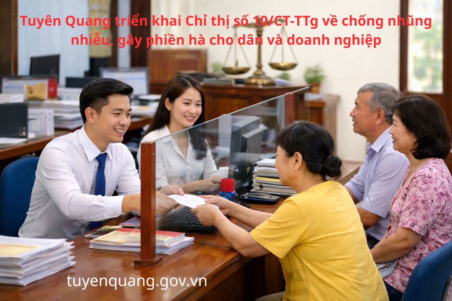 Nhằm tăng cường xử lý, ngăn chặn có hiệu quả tình trạng nhũng nhiễu, gây phiền hà cho người dân và doanh nghiệp trong giải quyết công việc, Ủy ban nhân dân tỉnh Tuyên Quang ban hành Kế hoạch thực hiện Chỉ thị số 10/CT-TTg ngày 22/4/2019 của Thủ tướng Chính phủ trên địa bàn tỉnh năm 2026.