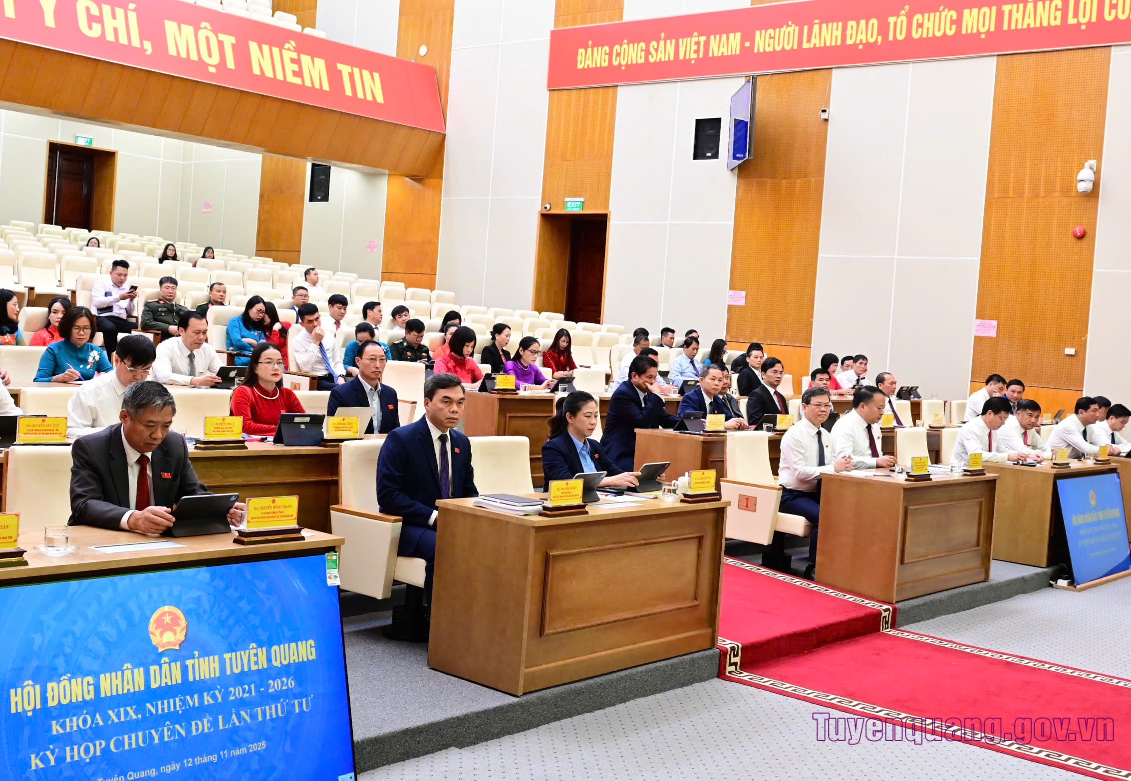 Sáng 12/11, tại Trung tâm Hội nghị tỉnh, HĐND tỉnh khoá XIX, nhiệm kỳ 2021-2026 tổ chức khai mạc Kỳ họp chuyên đề lần thứ tư xem xét, thông qua nhiều nội dung quan trọng. Các đồng chí: Nguyễn Văn Sơn, Phó Bí thư Tỉnh ủy, Chủ tịch HĐND tỉnh; Hầu Minh Lợi, Ủy viên Ban Thường vụ Tỉnh ủy, Phó Chủ tịch Thường trực HĐND tỉnh; Phạm Thị Minh Xuân, Ủy viên Ban Thường vụ Tỉnh ủy, Phó Chủ tịch HĐND tỉnh; Lê Thị Thanh Trà, Ủy viên BCH Đảng bộ tỉnh, Phó Chủ tịch HĐND tỉnh chủ tọa điều hành kỳ họp.